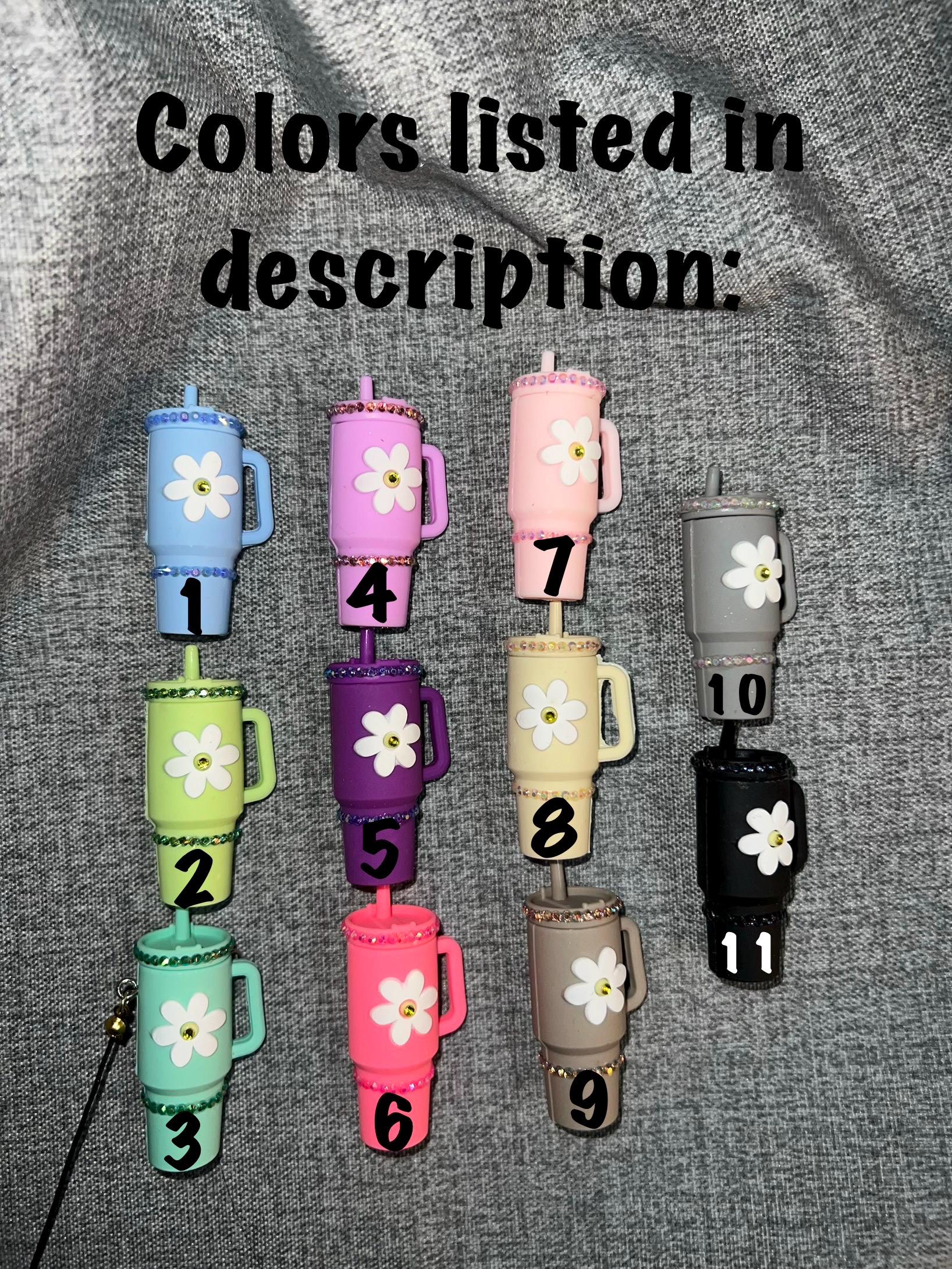 Does your little doll need its own “emotional support water” to carry around with them? The colors available are listed below, and number in the photos to help identify which is which. These cups are on a nylon cord with a lobster clasp for secure wear. Adorned with rhinestones that match the color of the cup.