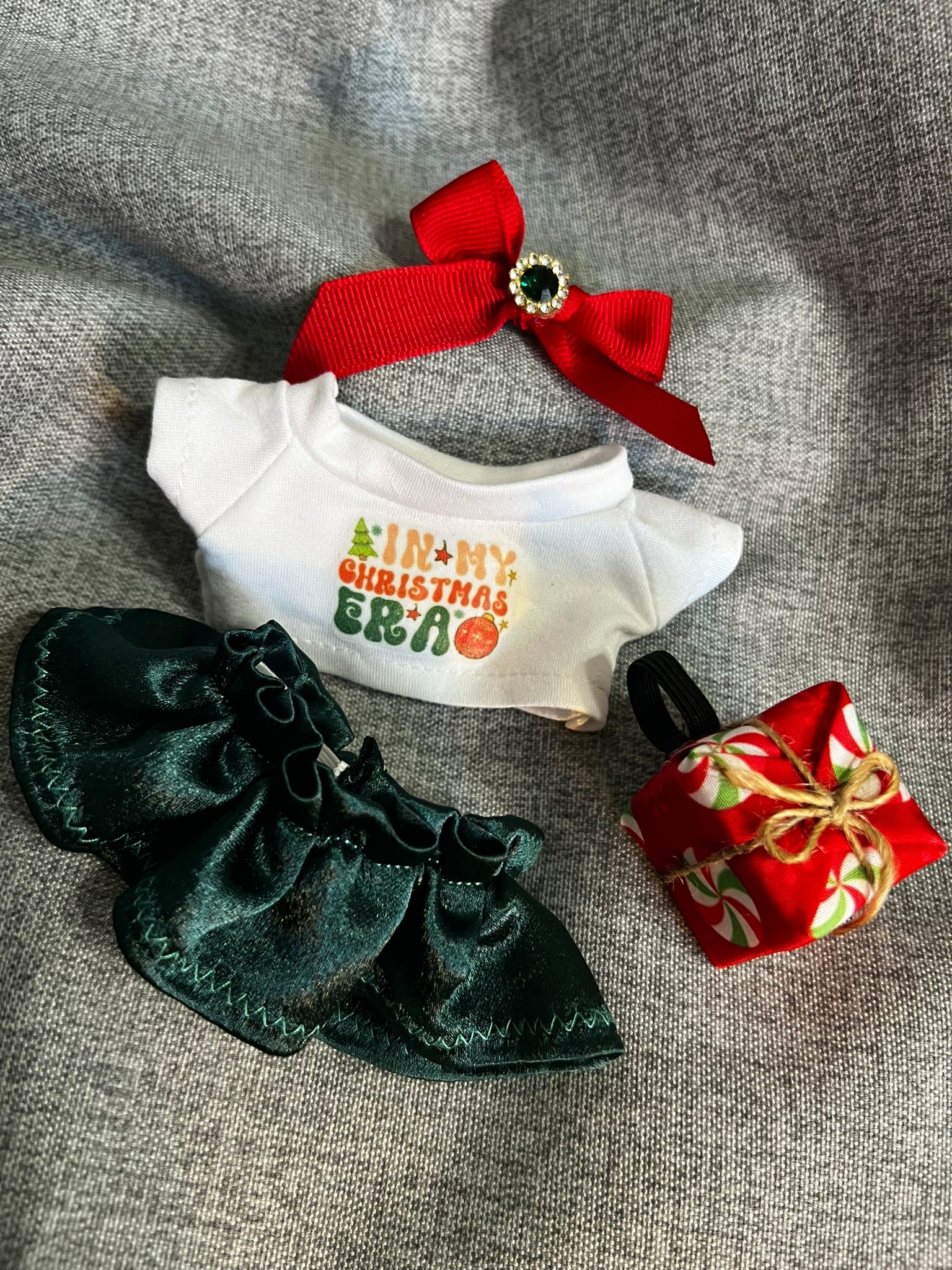 Christmas Era Tee & Skirt Set with Bow and Gift Accessory for 17cm Doll