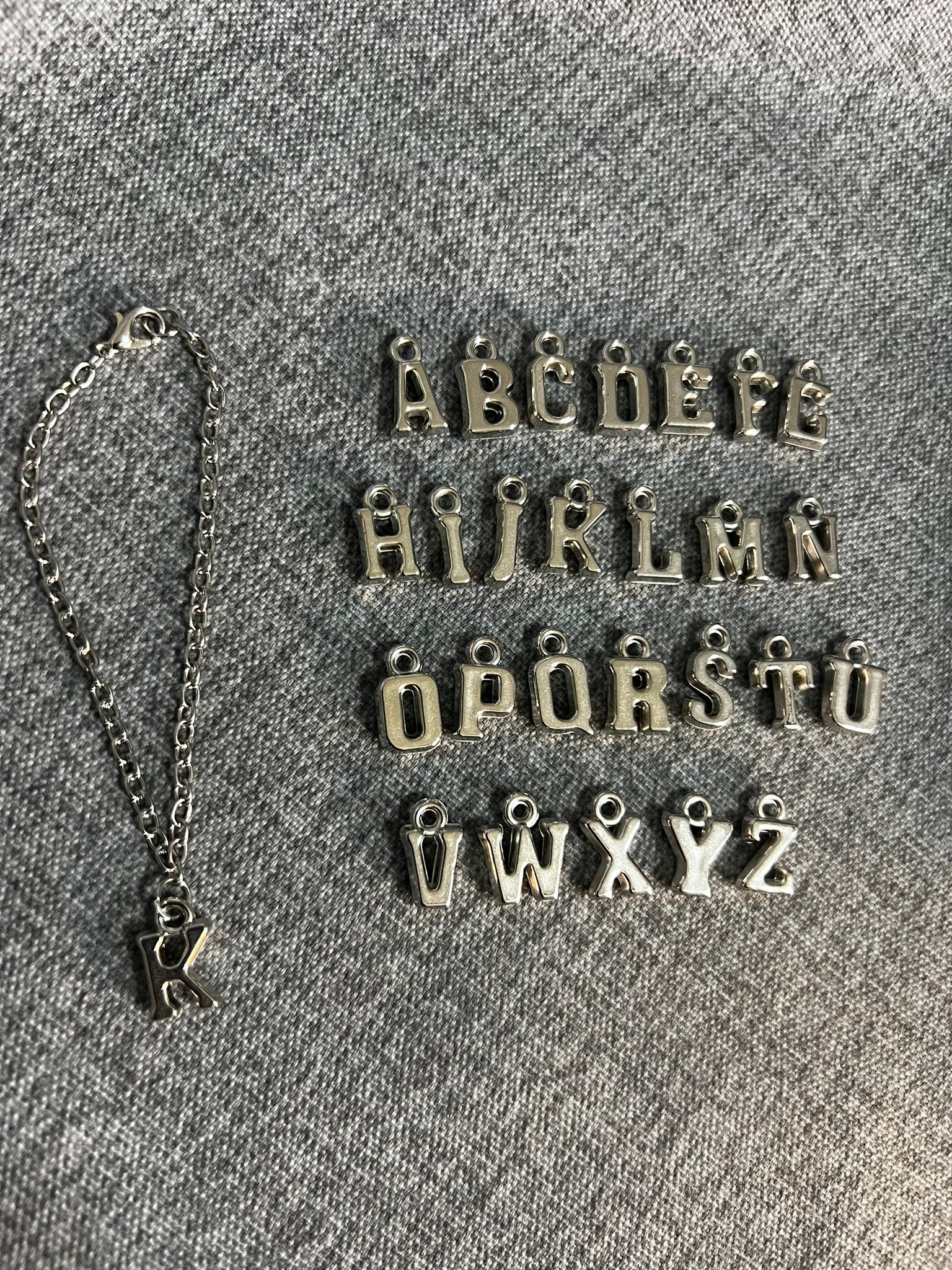 Silver Initial Charm Necklace for 17cm Doll